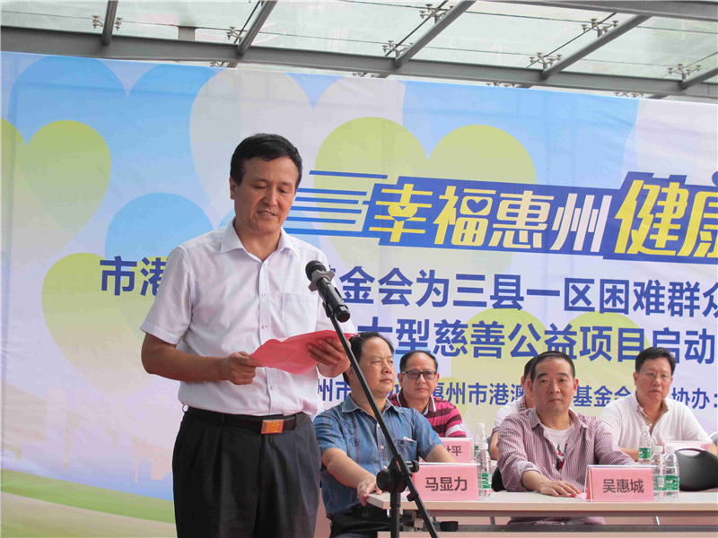 2016年9月23日下午,“幸?;葜萁】敌小贝笮凸骓?xiàng)目啟動(dòng)儀式在市第三人民醫(yī)院東院區(qū)舉行,市政協(xié)領(lǐng)導(dǎo)、市政協(xié)港澳委全體委員及各縣區(qū)篩查單位領(lǐng)導(dǎo)參加了啟動(dòng)。該項(xiàng)目由市港澳慈善基金會(huì)率先發(fā)起,在惠州市政協(xié)的共同牽頭下,聯(lián)合市第三人民醫(yī)院、博羅縣人民醫(yī)院、惠東縣人民醫(yī)院、龍門縣人民醫(yī)院為惠州市三縣一區(qū)的困難群眾開(kāi)展六大病種(白內(nèi)障、先天性心臟病、高血壓、糖尿病、甲狀腺疾病、育齡婦女兩癌)的免費(fèi)篩查,助力建設(shè)健康惠州。