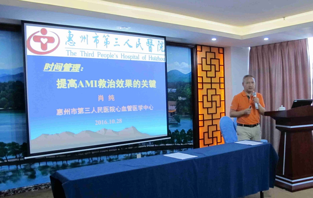2016年10月28日,市120急救指揮中心聯(lián)合仲愷高新區(qū)宣教文衛(wèi)辦公室組織召開了2016惠州市暨仲愷高新區(qū)醫(yī)療機構(gòu)院前急救培訓(xùn)班,市三院業(yè)務(wù)副院長、心血管醫(yī)學(xué)中心主任肖純博士應(yīng)邀主講《時間管理:提高急性心肌梗塞救治效果的關(guān)鍵》,仲愷高新區(qū)各醫(yī)療單位的百余名醫(yī)務(wù)人員參加了此次培訓(xùn)。