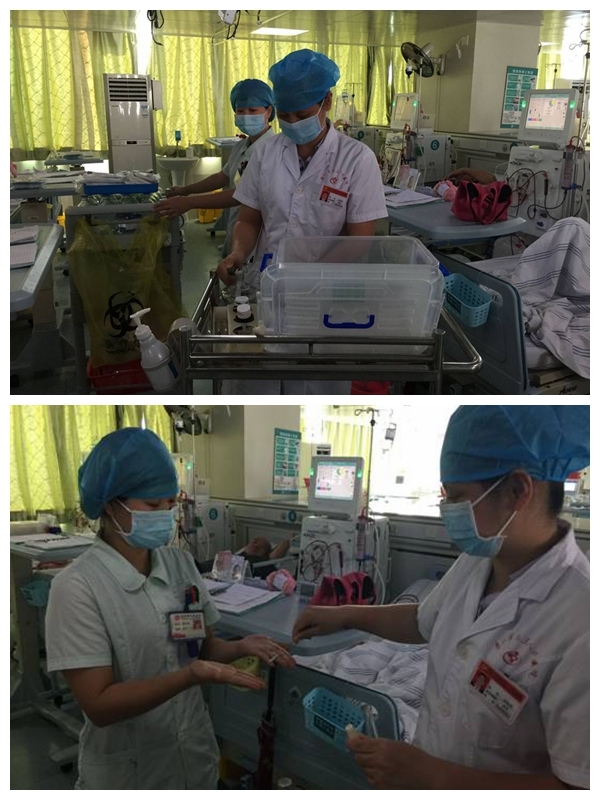 為提高醫(yī)務(wù)人員對醫(yī)院感染暴發(fā)事件的認(rèn)識,增強(qiáng)其對醫(yī)院感染暴發(fā)事件的應(yīng)急處置能力,進(jìn)一步明確相關(guān)科室和人員的職責(zé)任務(wù),完善應(yīng)急機(jī)制,院感科聯(lián)合血透室于2016年10月27日15:00組織血透室相關(guān)醫(yī)務(wù)人員進(jìn)行了醫(yī)院感染暴發(fā)處理應(yīng)急演練。