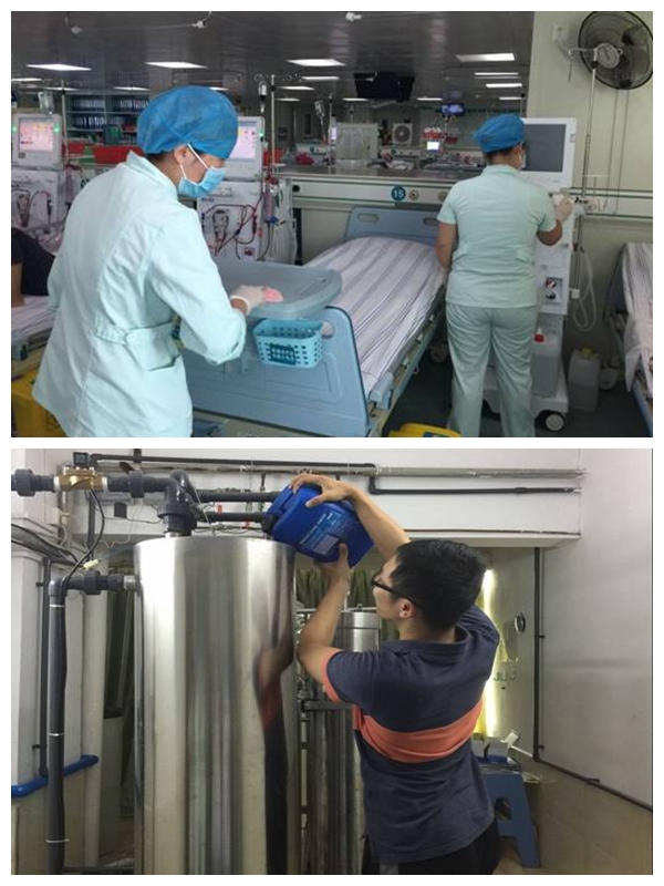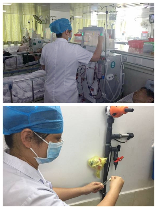 隨后工程部伍浩榮協(xié)助開展醫(yī)院感染暴發(fā)調(diào)查與控制,進(jìn)行水處理系統(tǒng)及管路消毒和沖洗,消毒后進(jìn)行細(xì)菌培養(yǎng),聯(lián)系微生物檢測中心做透析用水細(xì)菌內(nèi)毒素檢測后方可使用??剖衣鋵嵪靖綦x措施及各項護(hù)理工作,做好環(huán)境、物表清潔消毒(血透室護(hù)理組在郭丁花護(hù)士長指揮下清潔)。