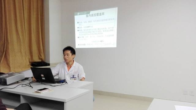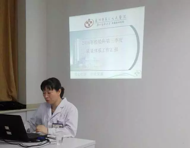 會議首先由科室質(zhì)量主管邱海山主管匯報科室的質(zhì)量工作。在室內(nèi)質(zhì)控方面,我科在生化、臨檢、免疫和微生物等項目基本開展室內(nèi)質(zhì)控,總體覆蓋率遠高于90%;積極參加衛(wèi)生部和省臨床中心的室間質(zhì)評,覆蓋率達到100%,合格率常年保持在90%以上,同時還通過金域?qū)嶒炇一虮镜貐^(qū)同級醫(yī)院等途徑進行室間比對工作;在醫(yī)務(wù)部的協(xié)助下,規(guī)范管理全院急診檢驗項目開單,制定急診檢驗項目分流方案,同時督導(dǎo)和考核員工的急診報告時限,增強員工急診報告意識;隨著科室信息化水平程度的提高,科室的危急值通報率基本達標(biāo),通報及時性也有大幅度地提高;在信息化工作上,我科已逐步推進無紙化檢驗工作,全方位提升檢驗科信息化管理水平。