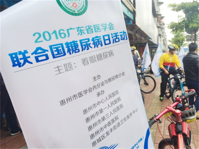 11月11日上午,16名醫(yī)務工作者開始了騎行宣傳活動,穿行過紅花湖,一路由惠州市中心人民醫(yī)院、惠州市第一人民醫(yī)院、惠州市第三人民醫(yī)院、惠州市中醫(yī)院最后到博羅人民醫(yī)院,車尾綁著糖尿病健康宣傳內(nèi)容的旗子在風中醒目地飄揚,吸引了不少市民駐足觀看。