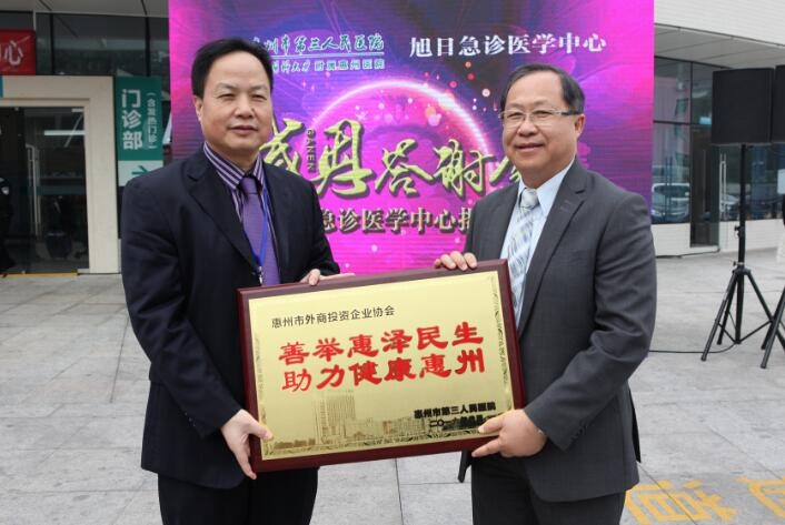 為感恩楊勛先生和香港旭日集團,感恩惠州市外商投資企業(yè)協(xié)會、惠州市港澳慈善基金會、惠州市臺商投資企業(yè)協(xié)會、惠州市汕尾商會、惠州市福建商會、深圳獅子會、惠州百信佳集團有限公司、天寶電子惠州有限公司、香港屯門獅子會、香港沙田獅子會等愛心組織和企業(yè),醫(yī)院特向各企業(yè)、組織團體和個人頒發(fā)了牌匾,以感恩他們對我院發(fā)展和公益事業(yè)開展以及對困難患者群眾的幫扶做出的無私貢獻!