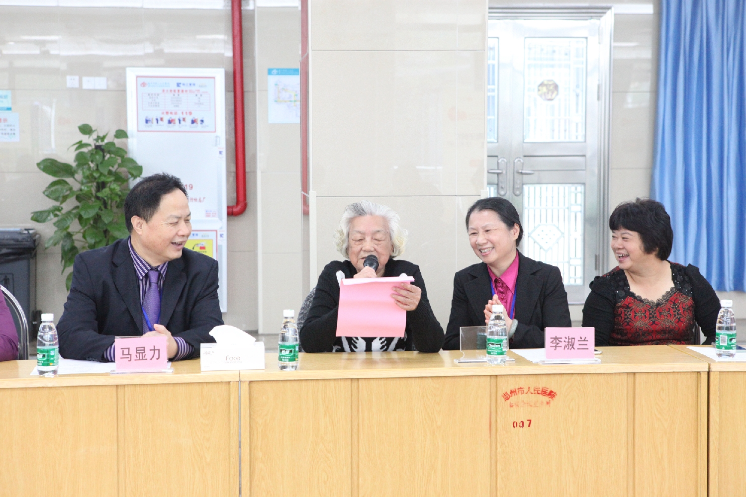 揭幕儀式結束后,各位慈善家參觀了我院綜合大樓,并在急診醫(yī)學中心二樓召開了座談會。座談會上,93歲高齡的張素梅老師作為患者代表發(fā)言,張素梅女士是楊勛先生的老師,也是30多年來見證并受益于三院發(fā)展的一名病人,她一直以來都非常關心三院發(fā)展和感謝三院的醫(yī)護人員對她的幫助。