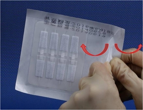 第一步:打開無菌初包裝袋,取出《醫(yī)用縫合拉扣》: