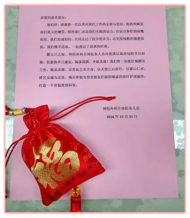 福袋里的每一句祝福的話語(yǔ)都是人文科室神經(jīng)外科醫(yī)護(hù)人員的肺腑之言!