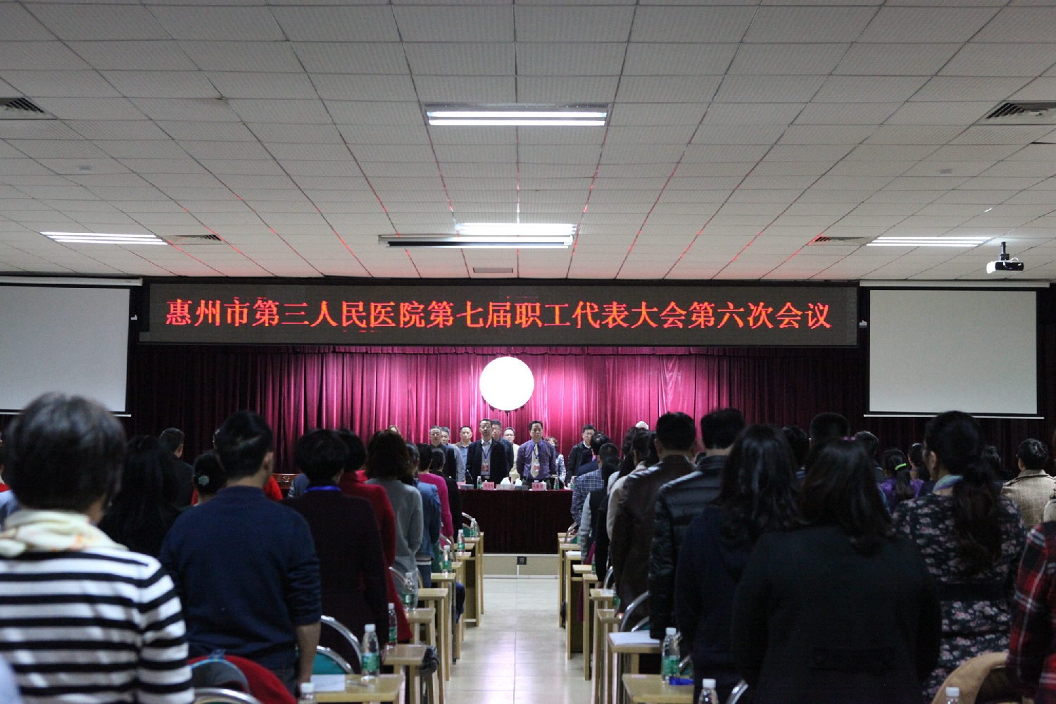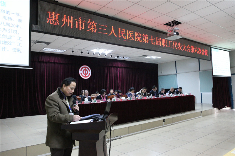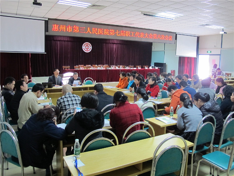 2017年1月22日,三院在醫(yī)院多功能會議室召開了“惠州市第三人民醫(yī)院第七屆職工代表大會第六次會議”。大會共有202正式代表和56人特邀代表參與會議?;莩菂^(qū)總工會組建部部長劉建秀同志,惠城區(qū)衛(wèi)計局黨委委員、工會主席林彩英同志等領(lǐng)導(dǎo)出席了會議。