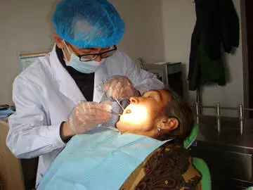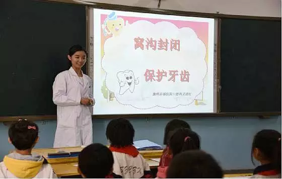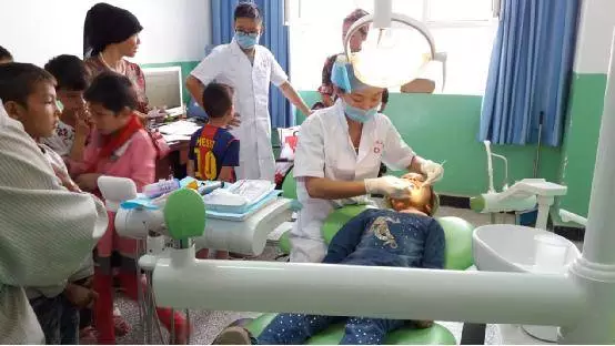 吳清紅醫(yī)師給孩子做口腔檢查,做免費窩溝封閉項目