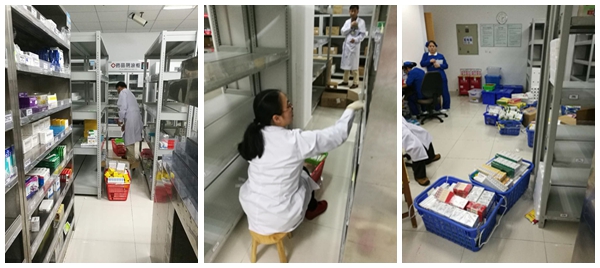 2017年3月11日下午,藥房主管梅姐組織全體西藥房人員按計劃進行合并搬遷,搬遷之前梅姐帶領大家先把一樓門診藥房用于存放中心藥房藥品的架子騰空,并劃分好藥品區(qū)域,然后各組藥學人員開始按部就班的展開搬遷,從藥品到辦公用品再到辦公設備和桌椅等,一件一件的從四樓搬到一樓,并且悉心歸置好,在所有人員的共同努力下,下午五點半終于順利完成全部藥品和物品的搬運及歸置,并在相關工作區(qū)域貼上標識語避免以后工作中出差錯,在原來的中心藥房門口貼上公告,告知病患藥房搬遷的消息。最后,梅姐對藥房各個區(qū)域巡視檢查確認無誤之后,向大家豎起了大拇指,大家看著藥架上鱗次櫛比的藥品,嘴角露出一絲絲欣慰的笑容。