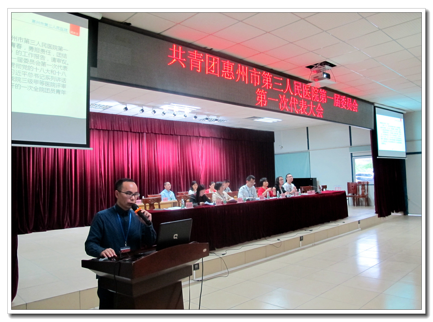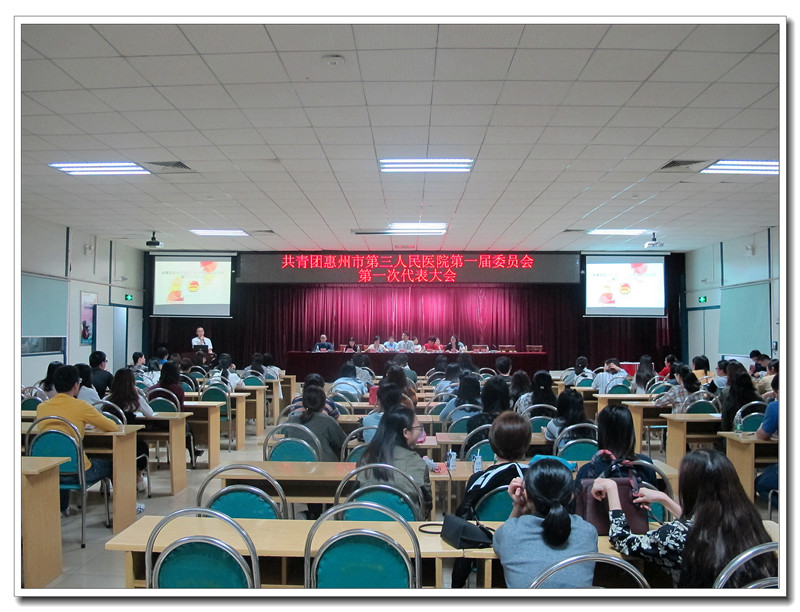 2017年4月27日下午,共青團惠州市第三人民醫(yī)院委員會第一屆第一次團員代表大會在醫(yī)院多功能會議室召開,大會審議通過團總支工作報告并選舉產(chǎn)生第一屆團委班子成員。區(qū)衛(wèi)計局工會主席林彩英,區(qū)衛(wèi)計局團委書記寧春燕,院領(lǐng)導鄧漢東書記、李春蘭副院長以及醫(yī)院團員干部、團員代表們出席了大會。