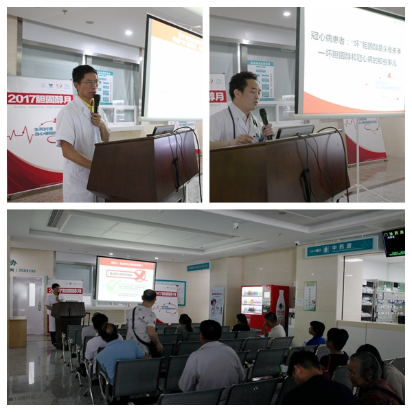 活動由認識膽固醇大型義診和膽固醇管理健康講堂組成,吸引了大批市民前來參加。護士們采用血脂快速測定儀為前100名參與市民檢測微機血脂,心腦血管專家結(jié)合血壓和既往健康史進行解釋,并送上膽固醇管理宣教手冊,市民們表示既便民又貼心。健康講堂更是請出神經(jīng)醫(yī)學中心副主任黃志勇主任醫(yī)師和心血管醫(yī)學中心副主任鐘思干主任醫(yī)師親臨現(xiàn)場,為大家講解如何管好膽固醇,遠離腦梗,以及“壞”膽固醇和冠心病的那些事兒,配合課件和視頻給大家科普膽固醇異常給血管帶來的危害,如何預(yù)防以及當心梗腦梗發(fā)生時該如何急救。