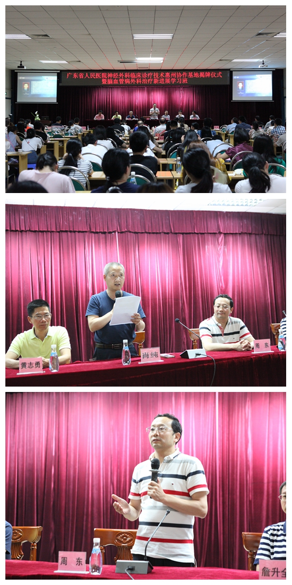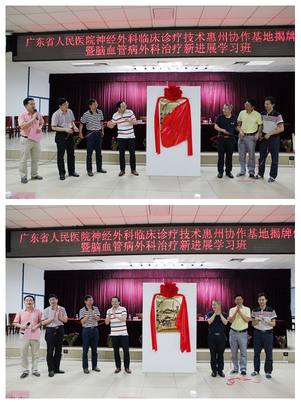 2017年5月6日,惠州市第三人民醫(yī)院神經(jīng)醫(yī)學(xué)中心與廣東省人民醫(yī)院神經(jīng)外科臨床診療技術(shù)協(xié)作基地,暨惠州市垂體瘤多學(xué)科診療協(xié)作基地的揭牌儀式我院工地會議室盛大召開。籍協(xié)作掛牌儀式之際,還舉辦了腦血管病外科治療新進(jìn)展學(xué)習(xí)班。