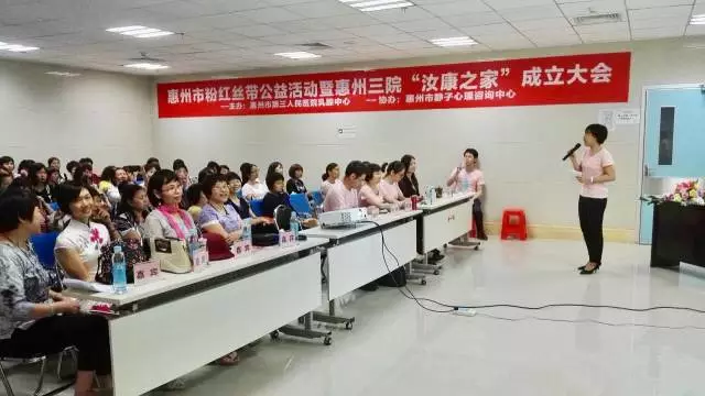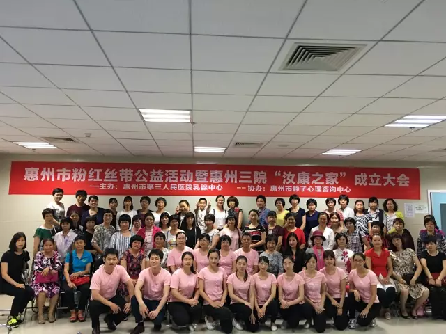 人不僅要治療軀體疾病,更要修復(fù)心靈創(chuàng)傷!本著這樣的宗旨,為了讓患者更多地了解乳腺癌,樹立戰(zhàn)勝疾病的信心,堅(jiān)持治療,促進(jìn)身體和心理的康復(fù),提高生活質(zhì)量,以更好地回歸社會(huì)。2017年5月6日,惠州市第三人民醫(yī)院乳腺中心和惠州市靜子心理咨詢中心聯(lián)合舉行了惠州市粉紅絲帶公益活動(dòng)暨惠州三院汝康之家成立大會(huì)!來(lái)自惠州市及深圳、河源、東莞等周邊城市各地的80余名乳腺癌病友參加了此次活動(dòng)。