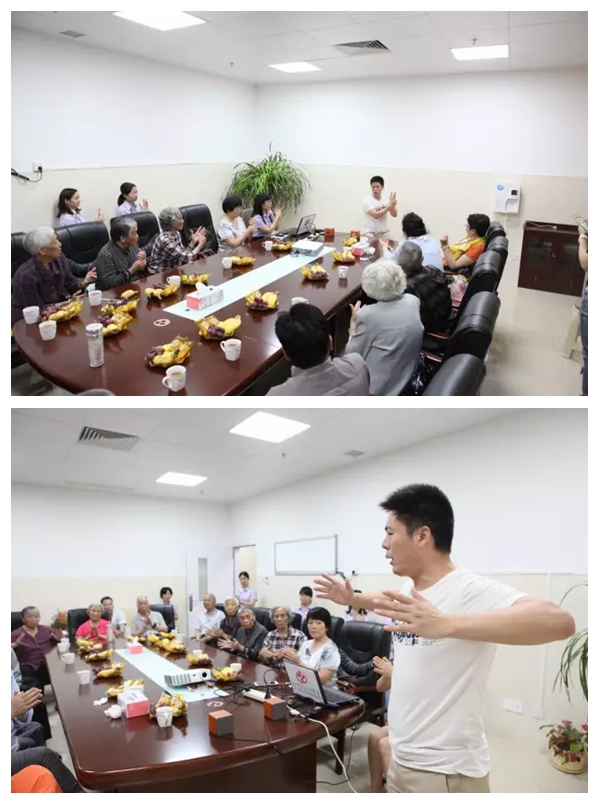 除了老人們的互相分享外,我們還邀請了惠州市第三人民醫(yī)院骨科康復(fù)科栗剛醫(yī)生及中醫(yī)呂錦輝醫(yī)生為老人們科普健康小知識。栗剛醫(yī)生是主攻中醫(yī)康復(fù)專業(yè)的,現(xiàn)場即興帶著老人們做起了體操及穴位按摩,把動作要點都一一解析,讓場面一度沸騰,老人們被栗剛醫(yī)生的詼諧有趣的講解逗得合不攏嘴。