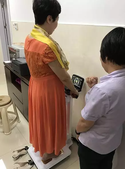 我們還為老人們安排了免費測量血糖、血壓及身體成分測試小體檢,現(xiàn)場出結(jié)果,由盧漫芳主任為大家一一評估身體健康狀況。當(dāng)天院內(nèi)肥胖門診提供的身體成分測定儀吸引了所有老人家們的眼光,紛紛要站上去體驗一把。