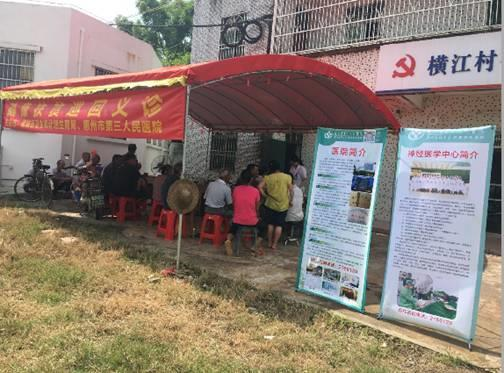 為落實健康精準扶貧工作,踐行黨的群眾路線教育,進一步提高村民的防病治病意識,6月29日,惠城區(qū)衛(wèi)計局領導帶隊,由市第三人民醫(yī)院神經內科黃志勇主任、中醫(yī)科曾永青主任、心血管內科、眼科醫(yī)生組成的專家義診服務隊到惠城區(qū)蘆洲鎮(zhèn)橫江村舉行健康義診活動。