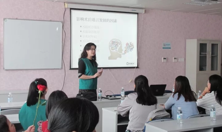 10月21日的當(dāng)天上午,在產(chǎn)科示教室也有一堂針對(duì)聽障兒童的言語康復(fù)訓(xùn)練課,課程非常有意義,現(xiàn)場(chǎng)患兒的父母親們都一邊認(rèn)真聽講一邊做筆記!