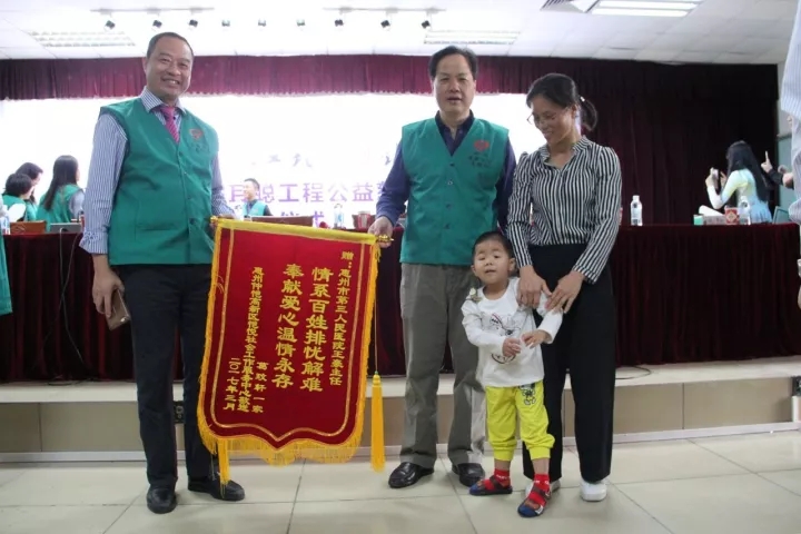 10月21日啟動(dòng)儀式結(jié)束之后,一位患兒的媽媽帶著孩子為耳聰工程惠州負(fù)責(zé)人王豪主任送來了錦旗,這面錦旗家屬在三月份就已經(jīng)做好,今天終于送到!