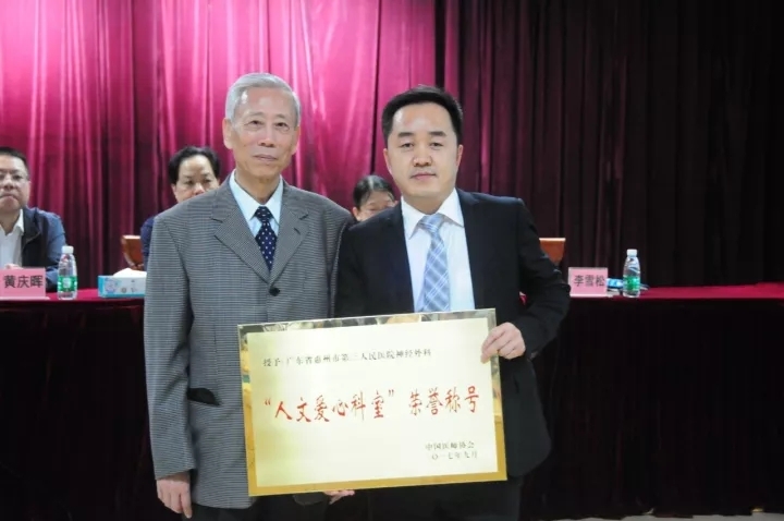 為表彰先進,樹立標桿,會上還舉行了頒獎儀式。2017年,惠州三院神經(jīng)外科成功獲得全國“人文愛心科室”榮譽稱號,成為惠州首個人文科室!惠州三院副院長、心血管醫(yī)學中心主任肖純博士也榮獲全國“白求恩式好醫(yī)生”提名獎!