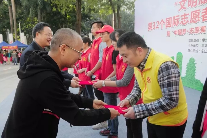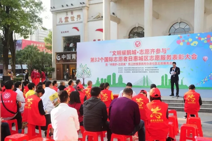 2017年12月3日下午,“文明耀鵝城·志愿齊參與”第32個(gè)國(guó)際志愿者日惠州市惠城區(qū)志愿服務(wù)表彰大會(huì)暨“中國(guó)夢(mèng)·志愿美”惠民幫辦進(jìn)社區(qū)志愿服務(wù)活動(dòng)在惠城區(qū)數(shù)碼商業(yè)街南廣場(chǎng)舉行。