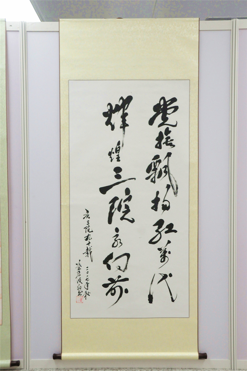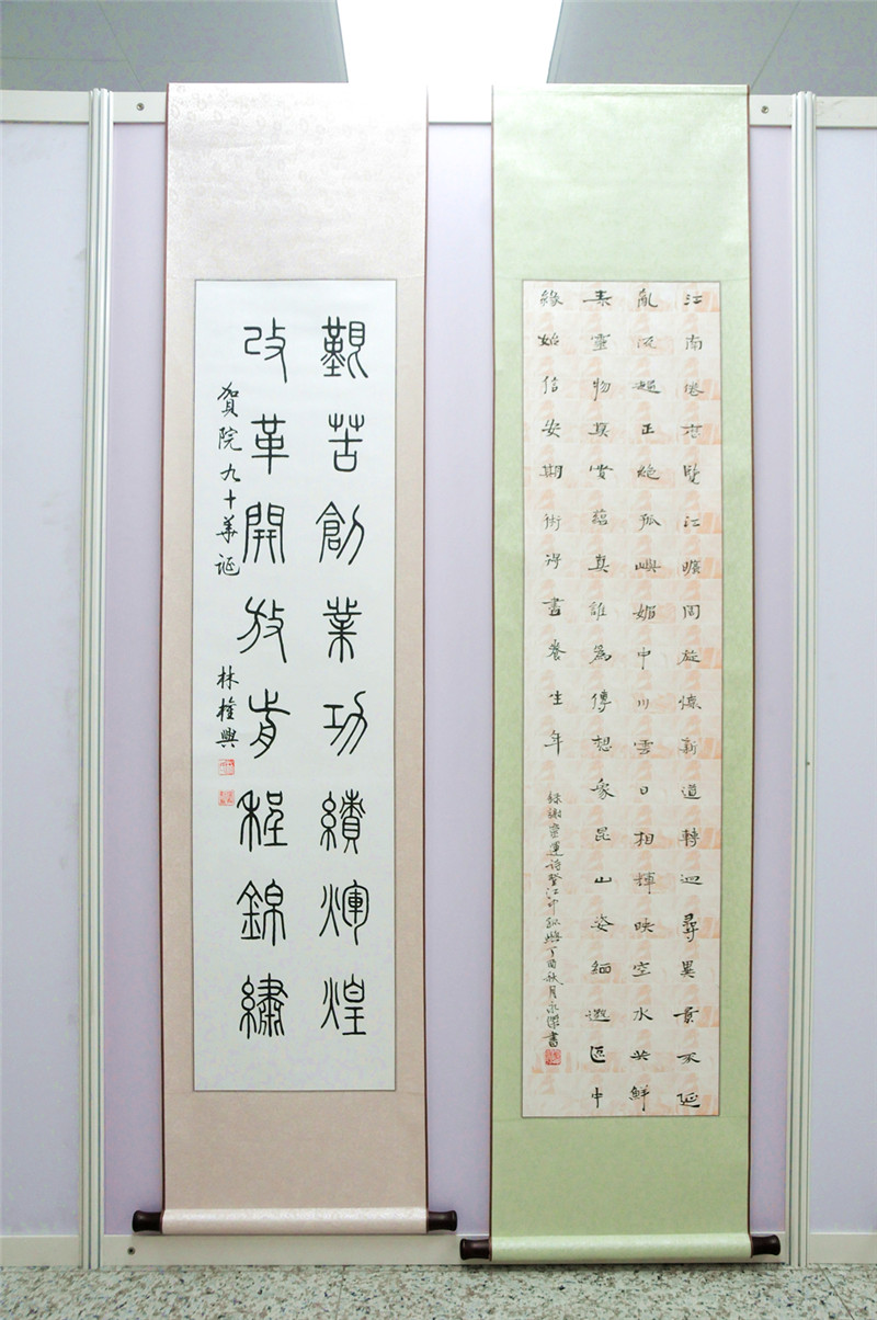 在現(xiàn)場展出的十余幅書畫作品,或鐵畫銀鉤,或矯若游龍,或鸞飄鳳泊,或清新淡雅。氣韻渾然天成,妙趣匠心獨具,多才多藝的三院人為惠州三院的90周年華誕獻上了珍貴的禮物!