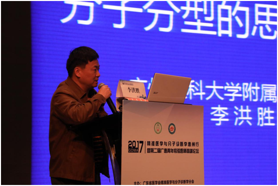李洪勝教授進行“精準醫(yī)學背景下乳腺癌分子分型的思考”的專題報告