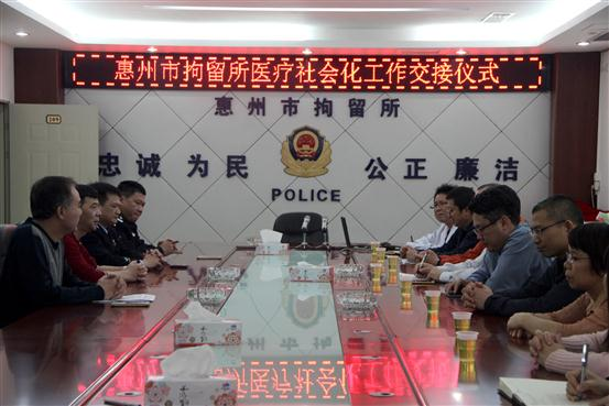 根據(jù)公安部、國(guó)家衛(wèi)計(jì)委、省公安廳推行公安監(jiān)管場(chǎng)所醫(yī)療衛(wèi)生專業(yè)化服務(wù)的統(tǒng)籌決策,在市委市政府的大力支持下,惠州市第三人民醫(yī)院于2017年12月5日與市公安局正式簽署了《惠州市市直公安監(jiān)所醫(yī)療衛(wèi)生專業(yè)化建設(shè)服務(wù)》,在維護(hù)在押人員的生命健康權(quán)益、確保刑事行政訴訟活動(dòng)等監(jiān)所工作的順利進(jìn)行給予了有力保障。根據(jù)合同要求,于2018年3月5、6日分別與惠州市強(qiáng)制戒毒所、惠州市看守所、惠州市拘留所正式進(jìn)行全面工作交接。