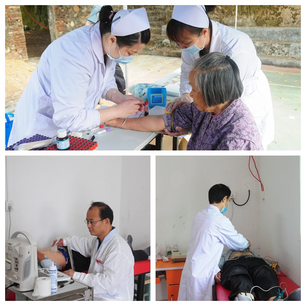 活動一開始,很快就吸引了眾多村民積極參與,場面熱鬧非凡!現(xiàn)場設有家庭醫(yī)生簽約宣教區(qū)、專家咨詢區(qū)和健康體檢區(qū),醫(yī)生們各司其職,耐心地詢問病史、量血壓、聽診、解答疑問,并妥善地安排村民有秩序地進行抽血化驗,免費檢查B超、心電圖等。