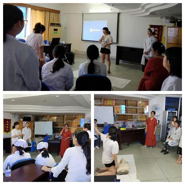 接著,陳偉花護士長為中心的醫(yī)護人員進行了急救技能(CPR)的培訓。根據(jù)大家對急救技能的掌握程度,運用通俗易懂的語言講解操作要點,耐心地演示每一個分解動作,讓大家對急救技能有了全新的理解。