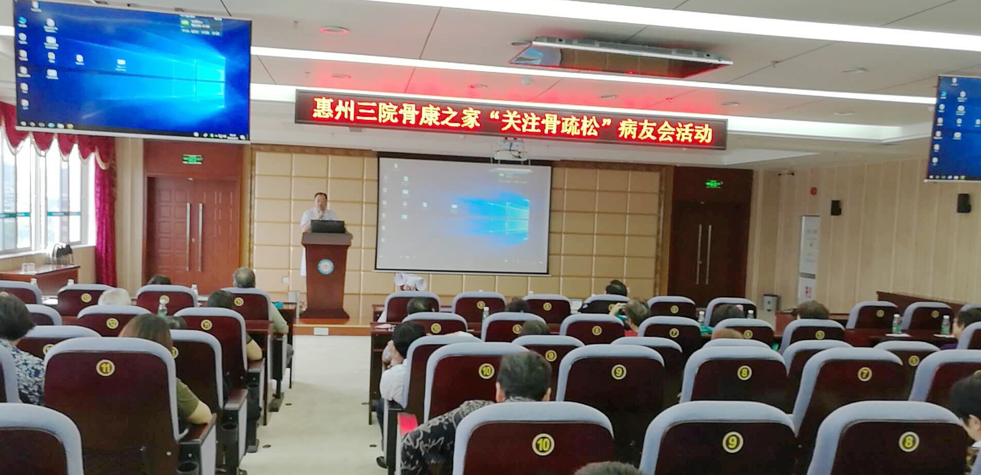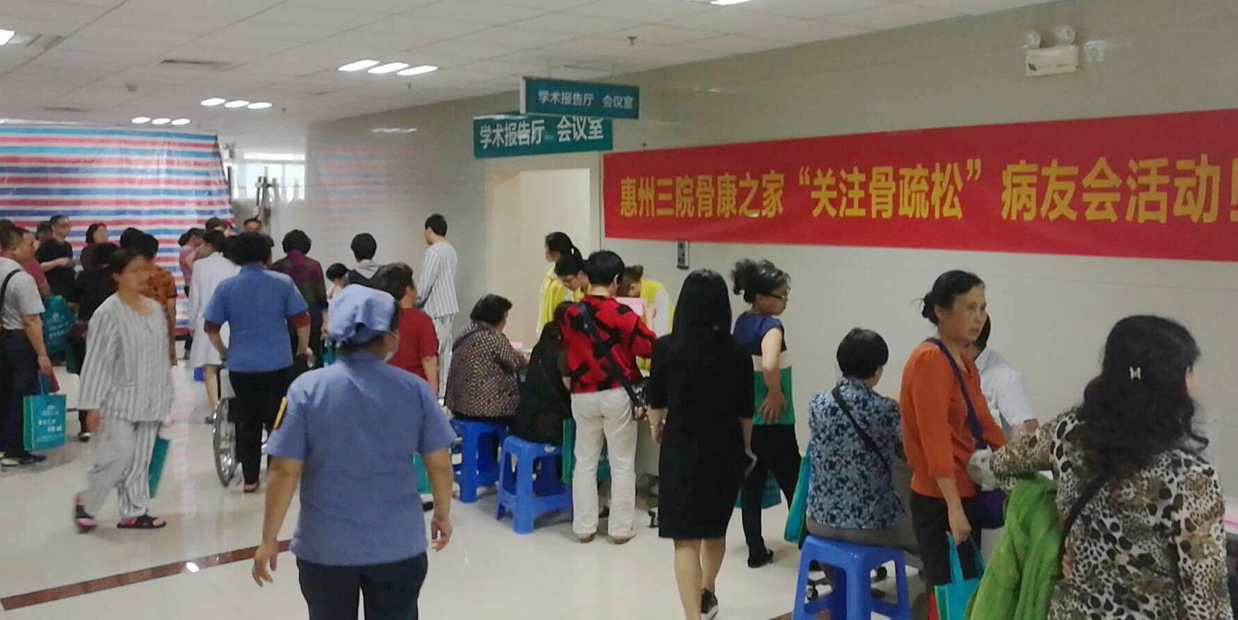 為推進(jìn)健康中國(guó)建設(shè),提高人民健康水平,推進(jìn)全民健康生活方式行動(dòng),提升中老年人對(duì)骨質(zhì)疏松癥的認(rèn)識(shí),更好地防治骨質(zhì)疏松癥,為骨友們建立聚會(huì)溝通的平臺(tái),增進(jìn)了解與鼓勵(lì),2018年4月27日下午,惠州市第三人民醫(yī)院在東院區(qū)學(xué)術(shù)報(bào)告廳舉行了以“關(guān)注骨疏松”為主題的骨友會(huì)活動(dòng)。