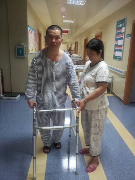 還有5床的發(fā)仔,他是康復(fù)科一開科就來(lái)住院的病人,是從神經(jīng)內(nèi)科轉(zhuǎn)過(guò)來(lái)的,因?yàn)槌鲆馔鈱?dǎo)致腦創(chuàng)傷,現(xiàn)在是恢復(fù)期,剛來(lái)的時(shí)候基本是全癱,現(xiàn)在他經(jīng)過(guò)我科中西醫(yī)的現(xiàn)代康復(fù)治療和傳統(tǒng)中醫(yī)治療已經(jīng)學(xué)會(huì)了自己吃飯,能讓他媽媽扶著去散步,會(huì)叫我們護(hù)士“靚妹”了,還被他的媽媽養(yǎng)成了小胖子呢。
