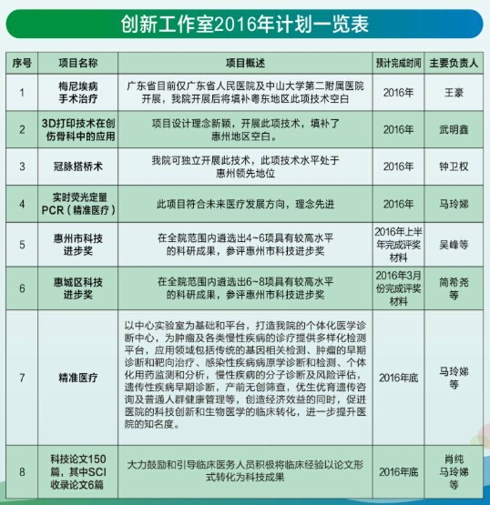 創(chuàng)新工作室2016年計(jì)劃一覽表