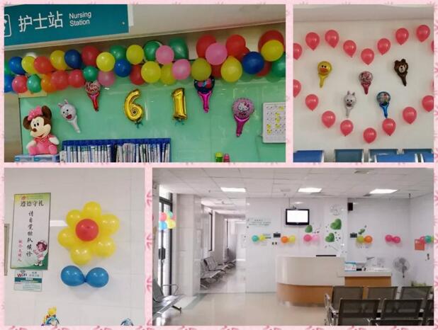 活動當天,兒科門診(本部及東院區(qū))及兒科住院部掛滿了彩色的氣球,處處洋溢著節(jié)日的歡樂氣氛。
