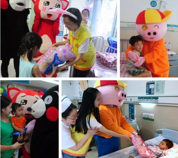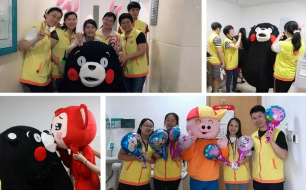 醫(yī)院特意“邀請”了熊本熊、麥兜豬、阿貍等一線卡通明星前來與孩子們歡度節(jié)日,為他們派送小禮物并合照留念;更有三院“人文愛心藝術(shù)團”強勢助陣,在兒科住院部舉行了一場溫馨而歡樂的迷你音樂會。