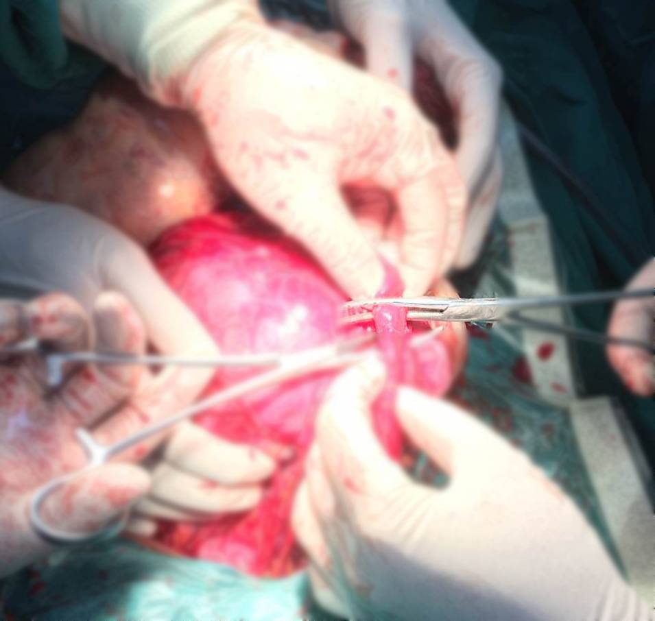 開刀進入腹腔的一霎那,我們全體人員都震驚了,在小小的腹腔中滿眼都是實質性包塊。