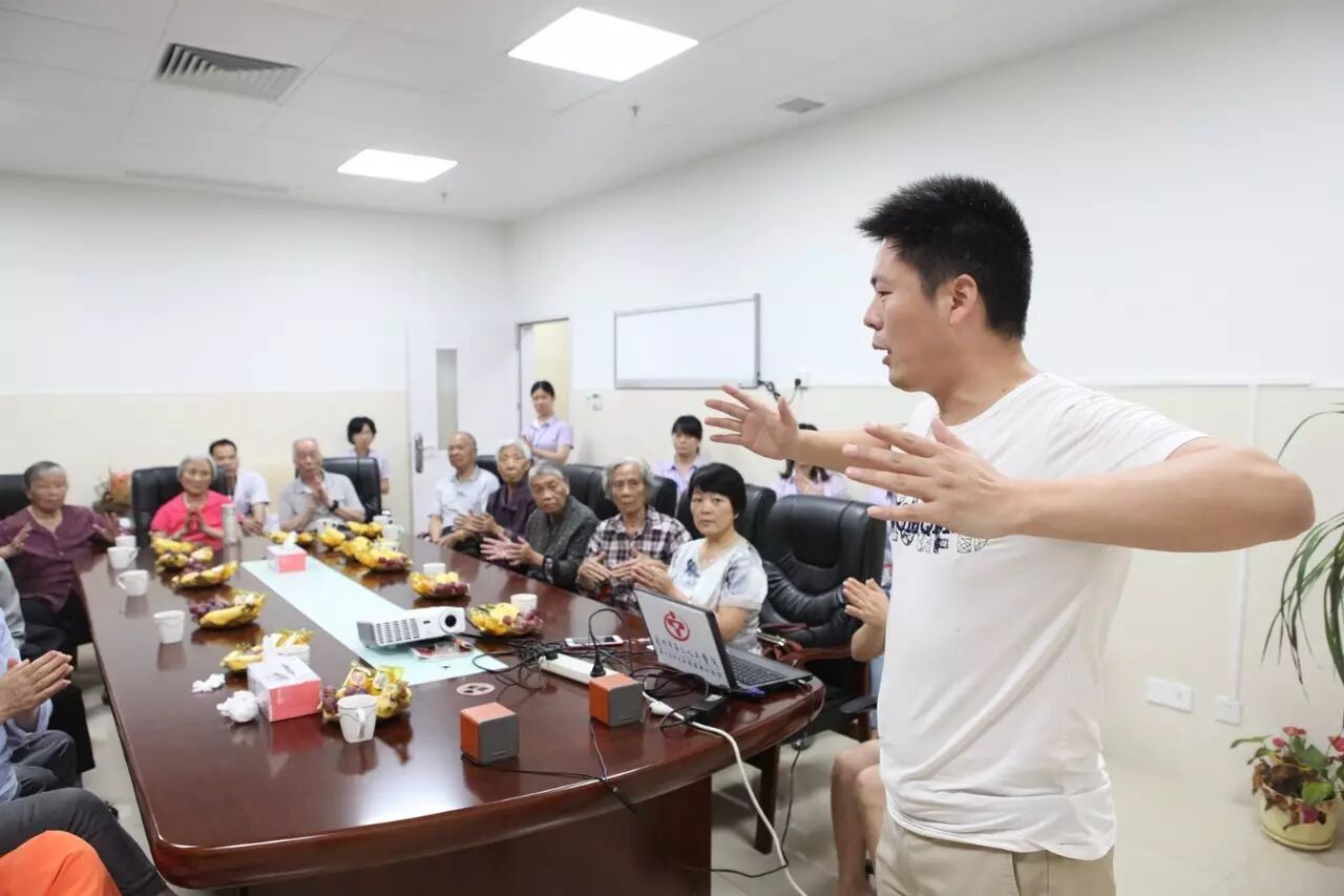 除了老人們的互相分享外,我們還邀請了惠州市第三人民醫(yī)院骨科康復(fù)科栗剛醫(yī)生及中醫(yī)呂錦輝醫(yī)生為老人們科普健康小知識。栗剛醫(yī)生是主攻中醫(yī)康復(fù)專業(yè)的,現(xiàn)場即興帶著老人們做起了體操及穴位按摩,把動作要點都一一解析,讓場面一度沸騰,老人們被栗剛醫(yī)生的詼諧有趣的講解逗得合不攏嘴。