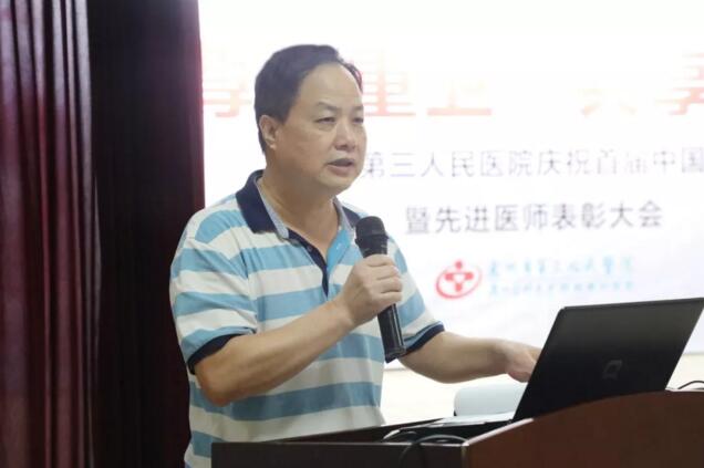 他高興地說,2018年8月19日是首屆“中國醫(yī)師節(jié)”,這是屬于醫(yī)師自己的節(jié)日。借此,我代表醫(yī)院黨政班子和以一名從醫(yī)36年的臨床醫(yī)師身份,向長年奮戰(zhàn)在臨床一線的全體醫(yī)師們致以最誠摯的節(jié)日問候,向建院91周年來一代又一代醫(yī)務(wù)工作者們,致以最衷心的感謝和崇高的敬意!