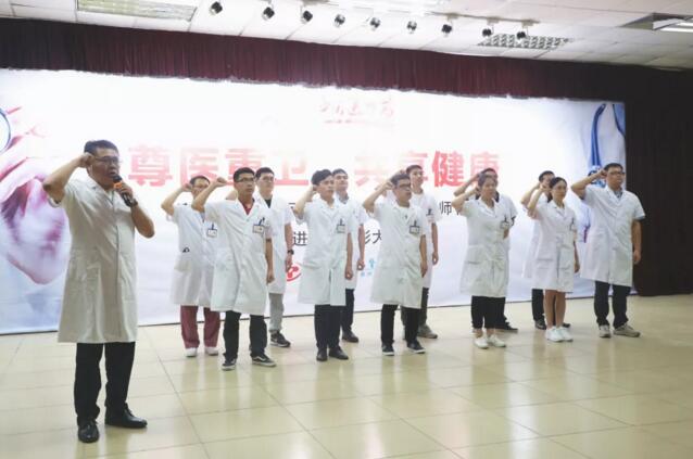 在醫(yī)務(wù)部郭建兵主任的帶領(lǐng)下,全體醫(yī)師莊嚴(yán)宣讀《中國醫(yī)師宣言》,大家的責(zé)任感和使命感油然而生!