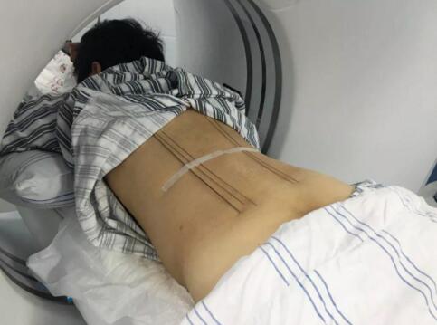 手術(shù)當(dāng)日,在放射科全力配合下,王鑫主治醫(yī)師順利完成了CT引導(dǎo)下上腹下神經(jīng)叢毀損術(shù)。術(shù)中采用“雙針會(huì)合法”,雙側(cè)穿刺針在CT精準(zhǔn)導(dǎo)航下達(dá)腹主動(dòng)脈兩側(cè),造影劑注射掃描見(jiàn)造影劑彌散良好,利多卡因阻滯試驗(yàn)?zāi)芨采w疼痛區(qū)域,注射10ml無(wú)水乙醇進(jìn)行神經(jīng)毀損……