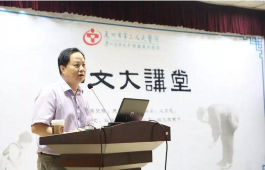 惠州三院黨委委員、工會(huì)主席李淑蘭主持會(huì)議。李淑蘭主席代表全院職工對(duì)袁鐘教授的到來(lái)表示熱烈的歡迎和衷心的感謝。她介紹說(shuō),袁教授曾任中國(guó)協(xié)和醫(yī)科大學(xué)出版社長(zhǎng)、總編輯。1999年被科技部、中宣部、中國(guó)科協(xié)評(píng)為全國(guó)科普工作先進(jìn)工作者。2006年獲國(guó)家科技進(jìn)步二等獎(jiǎng)。從事中西醫(yī)比較醫(yī)學(xué)、藝術(shù)文化、醫(yī)學(xué)倫理、醫(yī)學(xué)出版和健康科普等研究及工作?,F(xiàn)任中國(guó)醫(yī)師協(xié)會(huì)人文醫(yī)學(xué)專業(yè)委員會(huì)常務(wù)副主任委員,《中國(guó)醫(yī)學(xué)人文》雜志副總編。