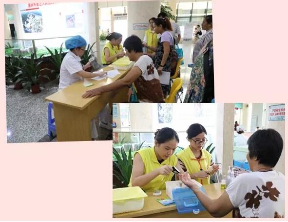 醫(yī)護(hù)人員們免費(fèi)為患者測(cè)血壓、尿酸和血糖