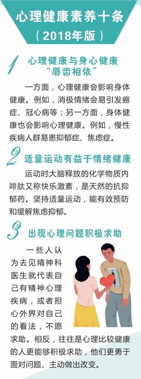 2018年10月10日是第27個“世界精神衛(wèi)生日”,今年的活動主題是健康心理,快樂人生”。傳統(tǒng)的健康觀是“無病即健康”,現(xiàn)代人的健康觀是整體健康,世界衛(wèi)生組織提出“健康不僅是軀體沒有疾病,還要具備心理健康、社會適應良好和有道德“。