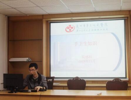 在培訓(xùn)現(xiàn)場,惠州三院院感科黃志堅醫(yī)師向基層醫(yī)務(wù)人員講解了醫(yī)務(wù)人員手衛(wèi)生的相關(guān)知識和原則,現(xiàn)場示范六步洗手法的操作和要點,并指導(dǎo)了速干手消毒劑的使用方法。