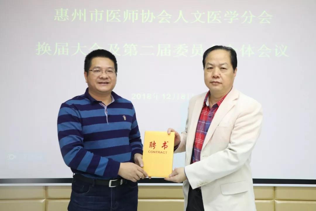惠州市醫(yī)師協(xié)會(huì)陳志輝秘書長(zhǎng)向馬顯力主任委員頒發(fā)聘書