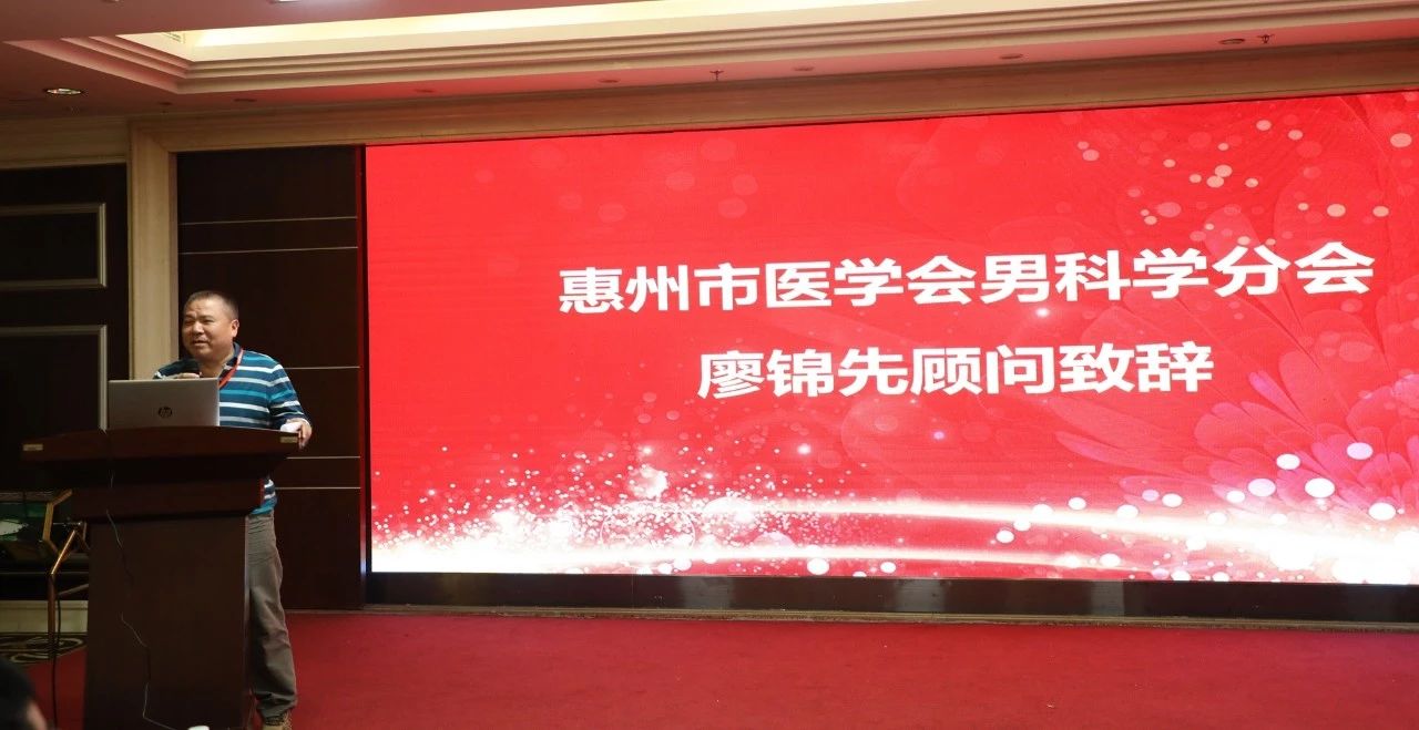 惠州市泌尿外科主委,男科學(xué)分會(huì)顧問(wèn)廖錦先主任殷切致辭,鼓勵(lì)大家要大膽創(chuàng)新,扎扎實(shí)實(shí)提高男科疾病的診療水平