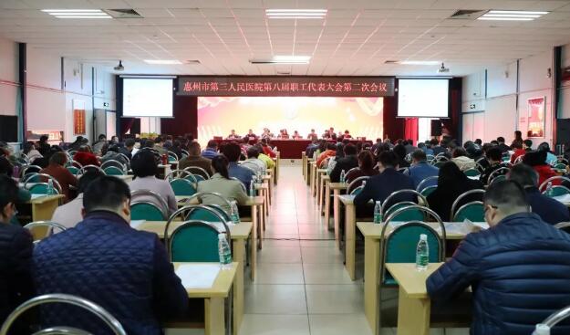 臘月二十春意動,惠州三院暖融融!2019年1月25日上午,惠州市第三人民醫(yī)院第八屆職工代表大會第二次會議在院本部多功能會議室隆重開幕。