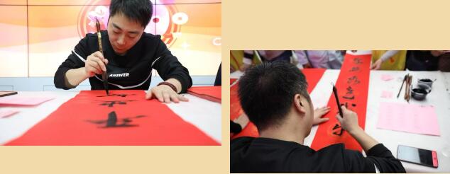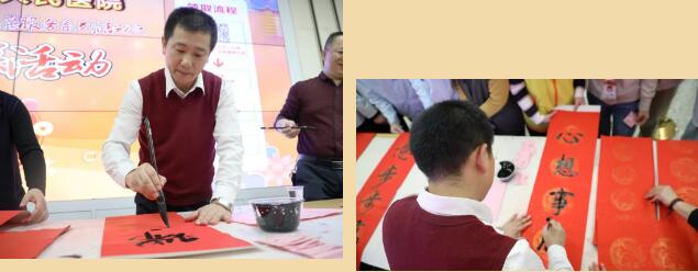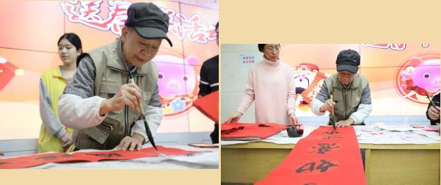 書法家們早早就來到現(xiàn)場,盡情揮毫潑墨,紅紙黑字、行云流水、妙筆生花。一副副春聯(lián)寄托著群眾和員工們對新一年的美好憧憬和祝福。活動(dòng)帶來了喜慶的氣氛,受到了群眾熱烈歡迎?,F(xiàn)場一位杜老先生還自發(fā)加入了潑墨的隊(duì)伍中。