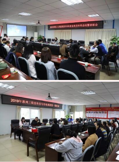 為進(jìn)一步提升醫(yī)院宣傳隊(duì)伍的整體素質(zhì),加強(qiáng)宣傳員的管理及培訓(xùn),2019年1月28日下午,惠州市第三人民醫(yī)院2018年宣傳員年終總結(jié)暨表彰會(huì)暨2019年宣傳員寫作培訓(xùn)班第一期培訓(xùn)活動(dòng)在惠州三院行政樓五樓會(huì)議室召開!