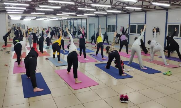 在形體室里,悠揚(yáng)的音符跳躍,氣氛輕松愉悅。學(xué)員們坐在色彩斑斕的瑜伽墊上,跟隨瑜伽老師的動(dòng)作和節(jié)奏,凝神靜氣、呼吸、冥想、伸展肢體……