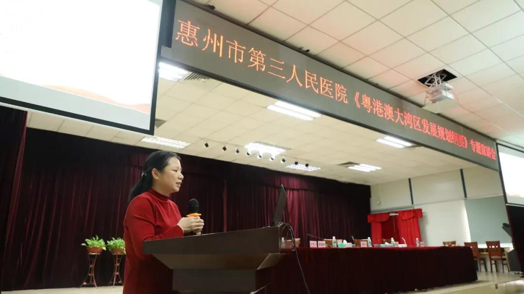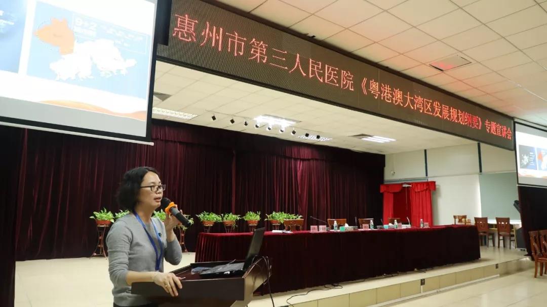 2019年3月28日下午,惠州市第三人民醫(yī)院舉行《粵港澳大灣區(qū)發(fā)展規(guī)劃綱要》專(zhuān)題宣講會(huì),醫(yī)院黨委宣傳委員李淑蘭受邀作專(zhuān)題宣講。